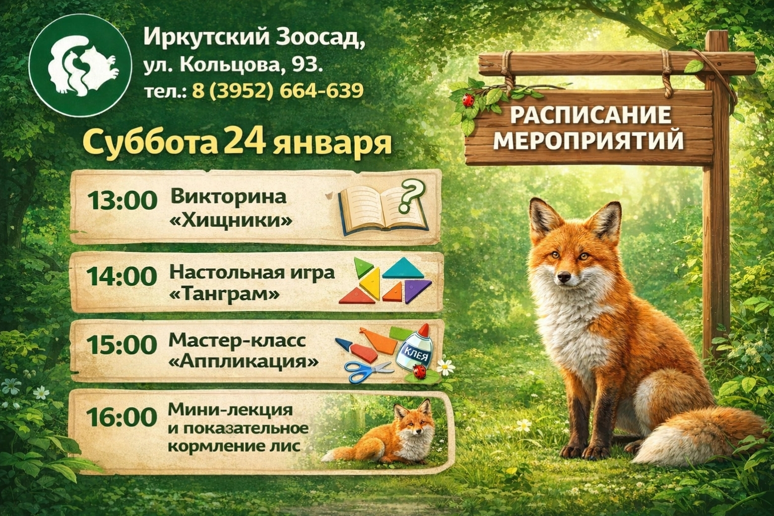 🦊16:00. Мини-лекция и показательное кормление лис
