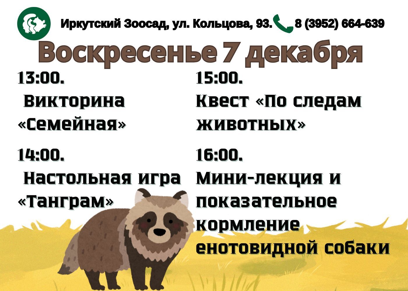 ❄️16:00. Мини-лекция и показательное кормление енотовидной собаки